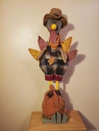 >Thanksgiving Turkey Decoration - rustic - cloth and wood - approx. 22" tall