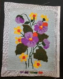 >Vintage Needlepoint - Flowers, medium blue background, 9x12 on 11x14 canvas